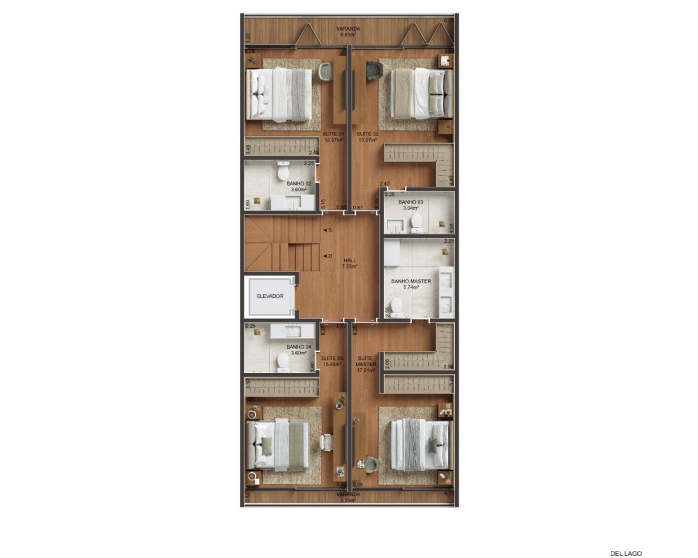 As áreas privativas garantem que cada membro da família tenha seu espaço pessoal e, ao mesmo tempo, estejam integrados aos ambientes de convivência, proporcionando conforto e privacidade em um só lugar.
