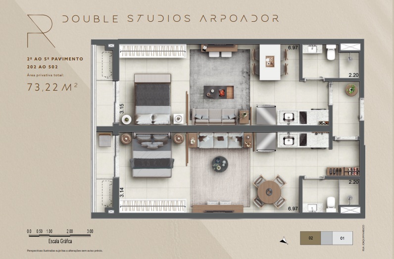 | Double Studio | R$ Consulte | 71 m² |