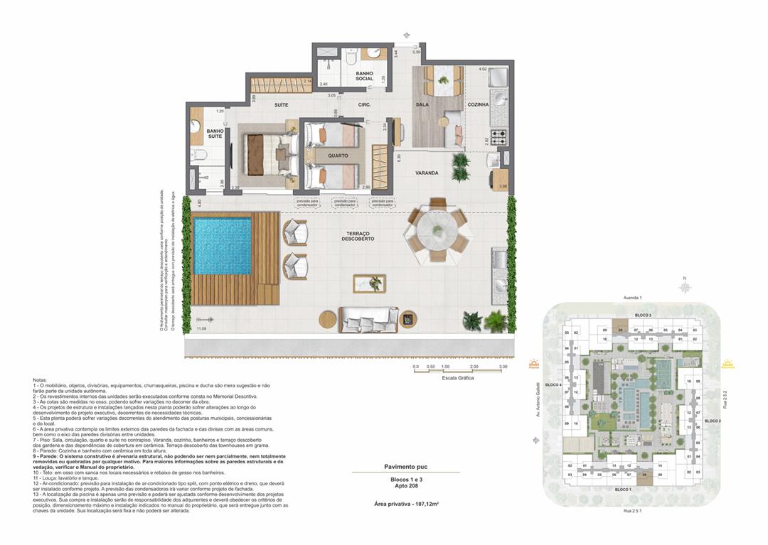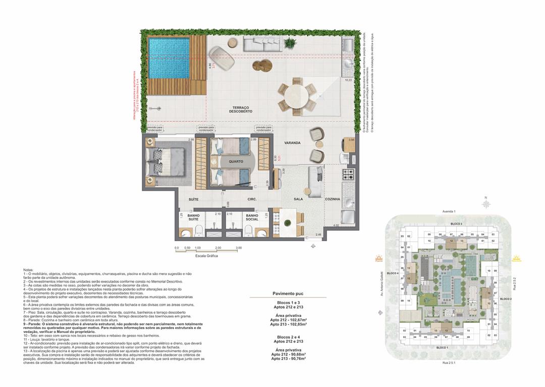Up Gardens: 2 e 3 quartos, com terraço privativo no andar do PUC e 1 vaga.
