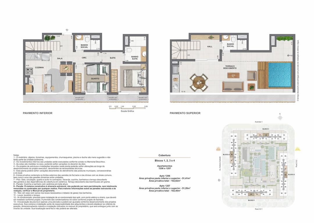 As Coberturas Duplex Arte Wood Residences são um espetáculo à parte. Com opções de 2 e 3 quartos, esses imóveis oferecem amplas áreas externas com vista panorâmica da Barra Olímpica.