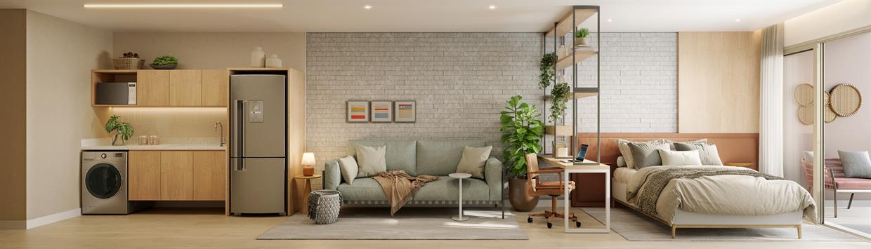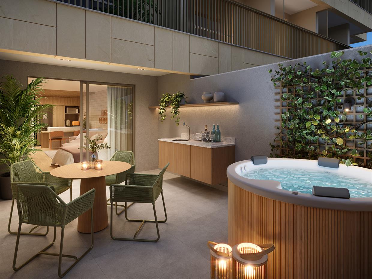 Os studios Be In Rio Siqueira Campos são, sem dúvida, o destaque do projeto. Com metragens que variam de 37,12 m² a 49,74 m², eles são ideais tanto para moradia quanto para investimento, incluindo aluguel por temporada, que segue aumentando exponencialmente na região.