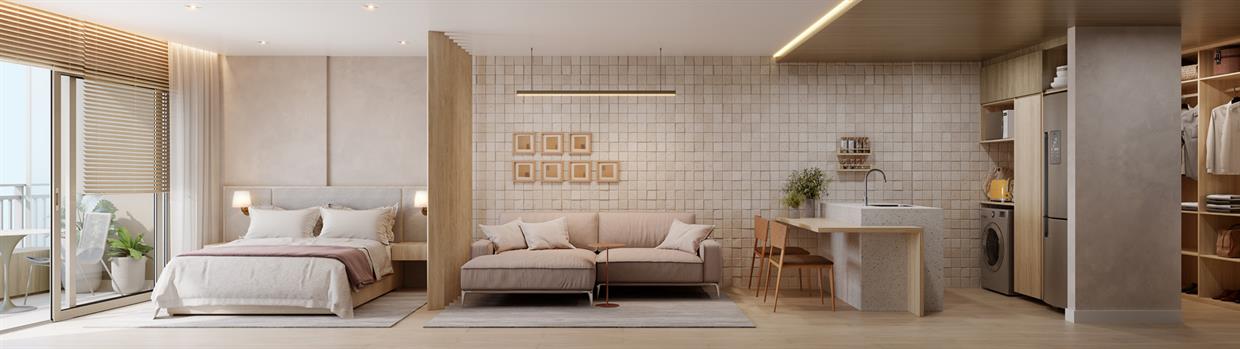 - Studios: 192 unidades (incluindo 8 studios garden)