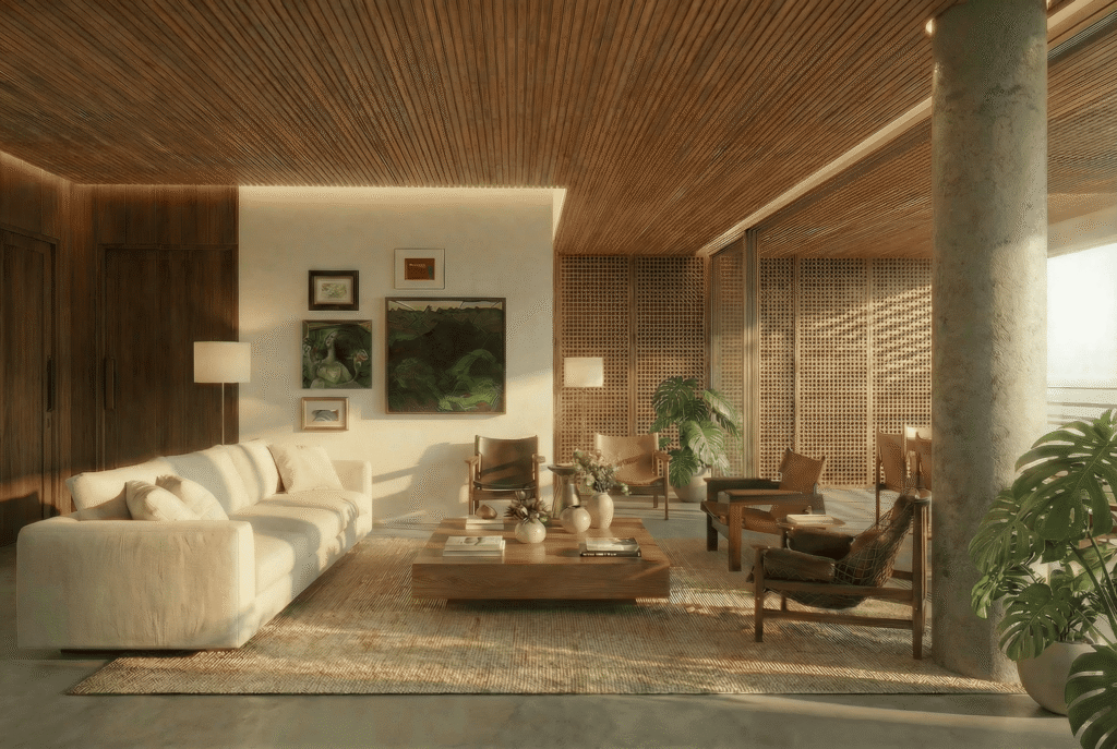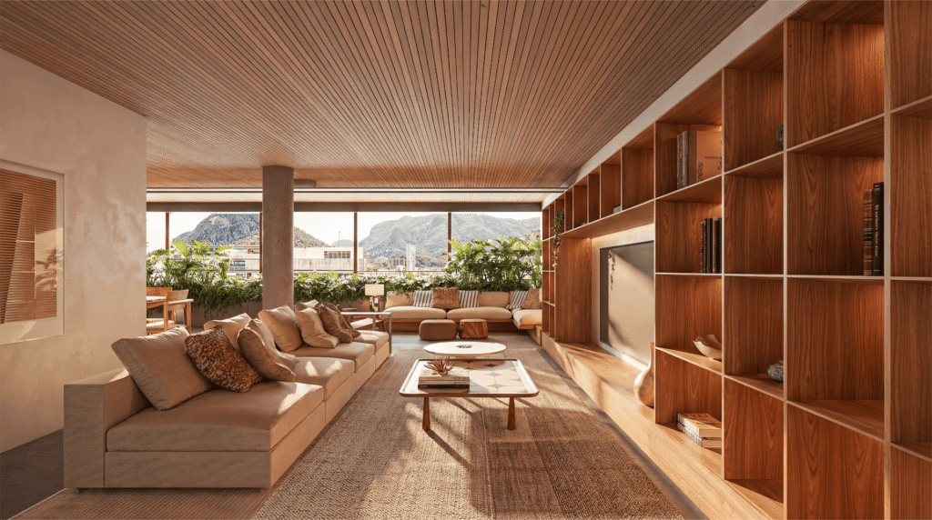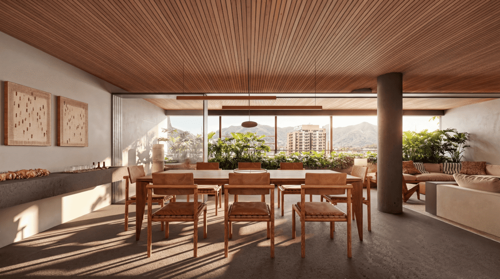 As unidades tipo do Bruma Mozak oferecem 227,76 m² de puro aproveitamento. O grande diferencial é o conceito de “living expandido”. Ao integrar a varanda ao salão principal, a Mozak criou um espaço de convivência que desafia as metragens convencionais, oferecendo uma amplitude raramente vista em plantas de 4 suítes.