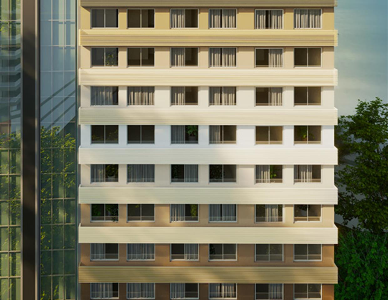 O projeto conta com 152 studios, 8 unidades garden e 8 coberturas, totalizando 168 unidades exclusivas.