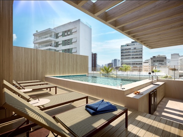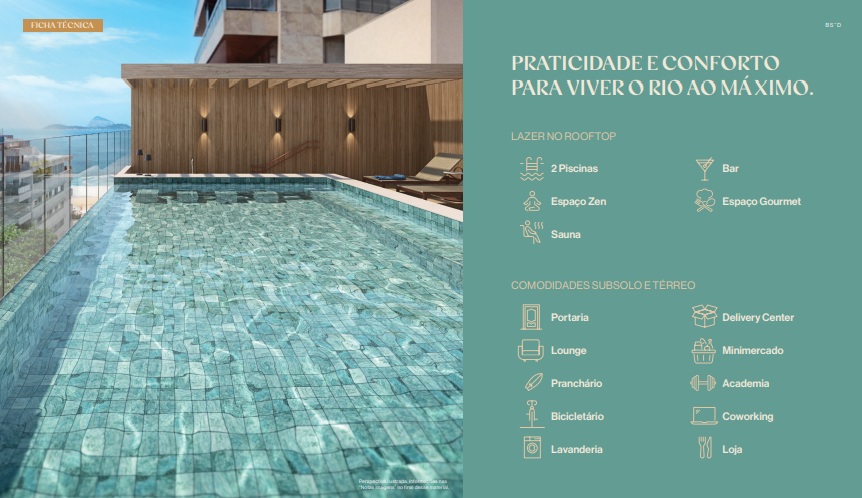 Rooftop completo: lazer no topo com vista do Leblon