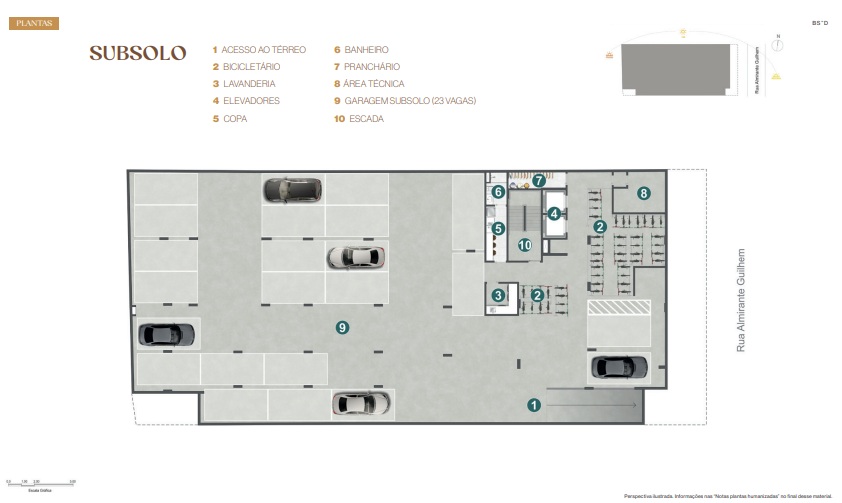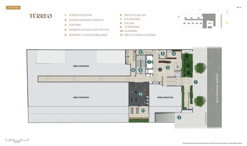 Guilhem Mozak: Comodidades no subsolo e térreo