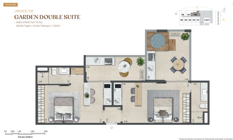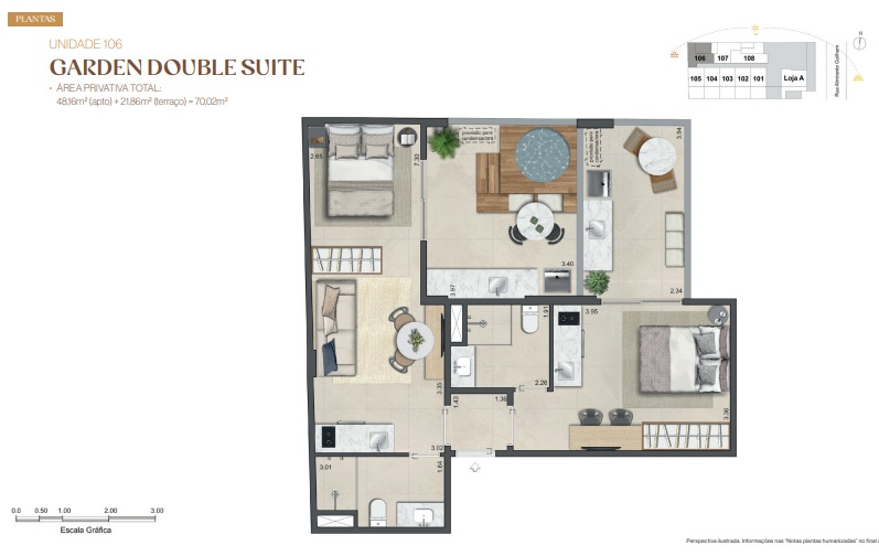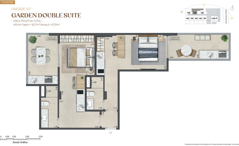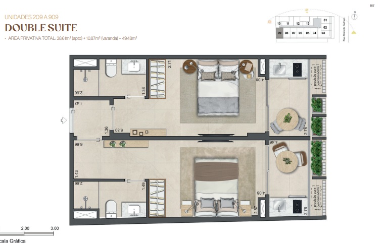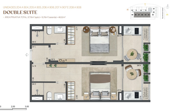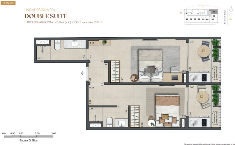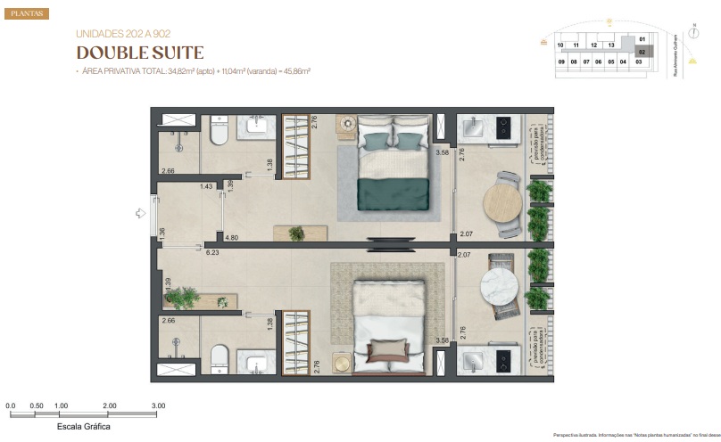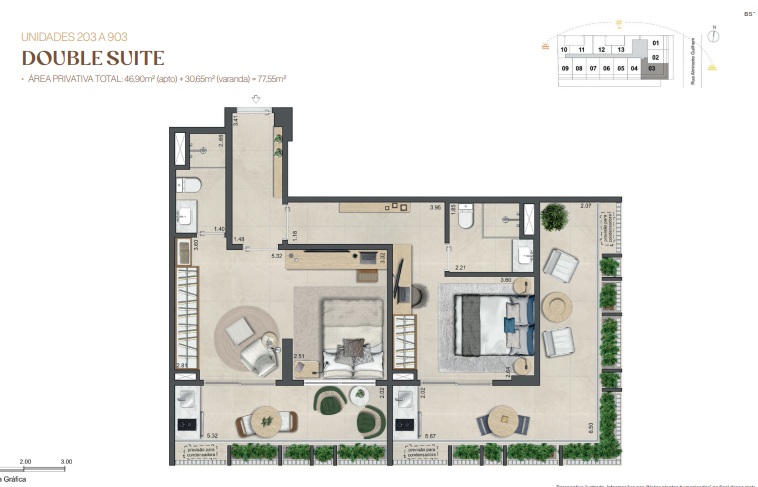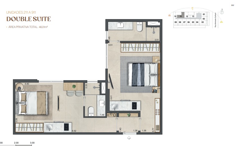 Double Suíte – Duas suítes para quem precisa de mais privacidade, home office dedicado ou recebe com frequência.