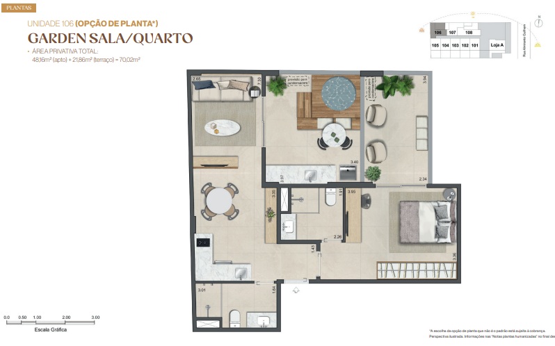 Garden – Apartamentos com área externa privativa para quem valoriza integração com o ar livre.