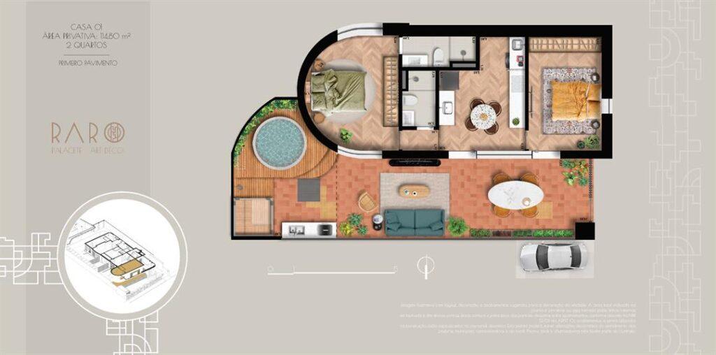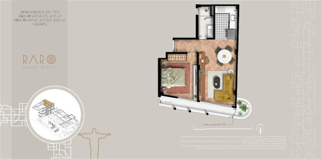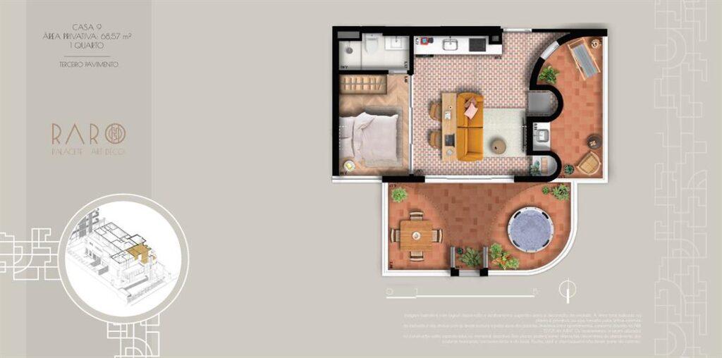 O residencial contará com maravilhosos apartamentos de 1, 2 e 3 quartos e metragens que variam de 48m² a 193m². Se você deseja morar ou investir em um residencial único na região, certamente o lançamento residencial Raro, é a sua melhor opção.