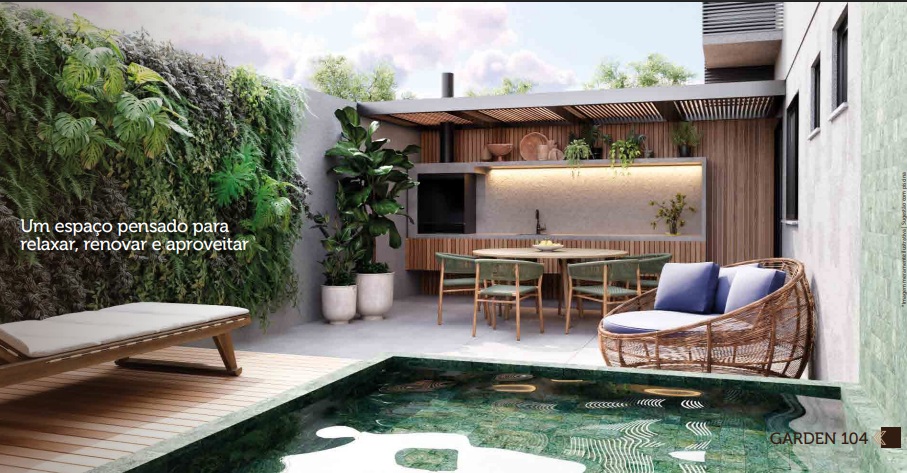 - Piscina: O refúgio perfeito para os dias quentes do verão carioca, com design sofisticado e área para descanso.