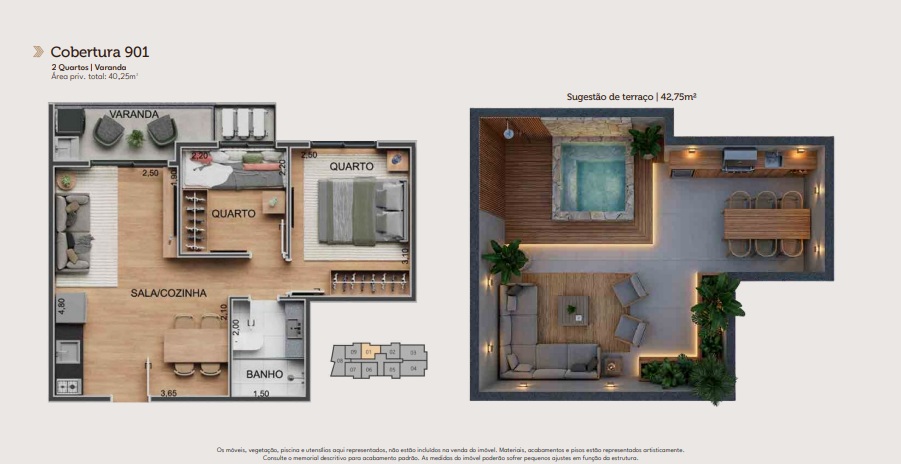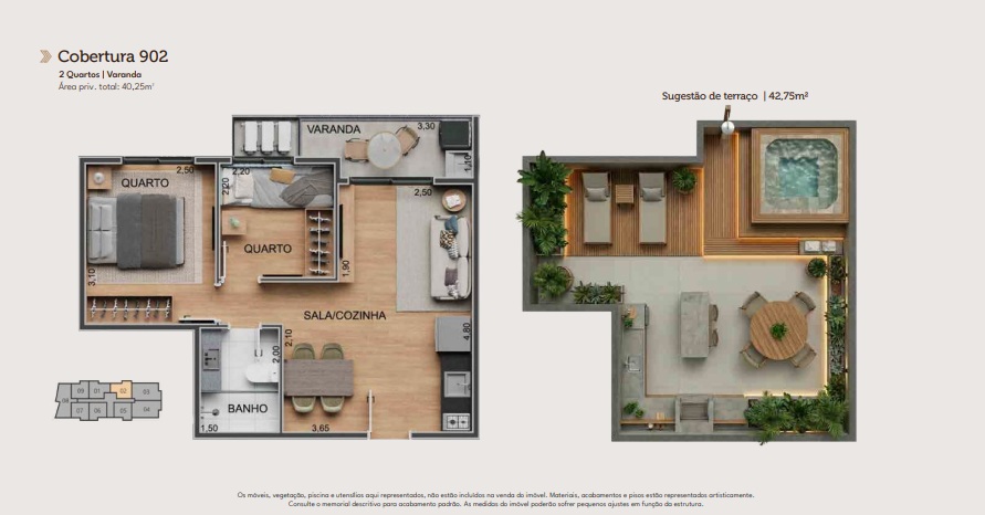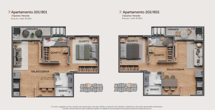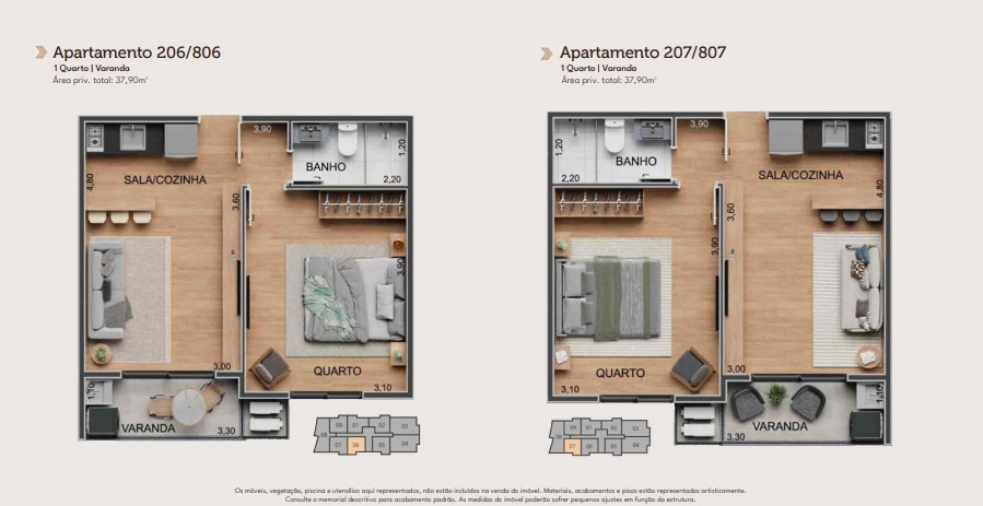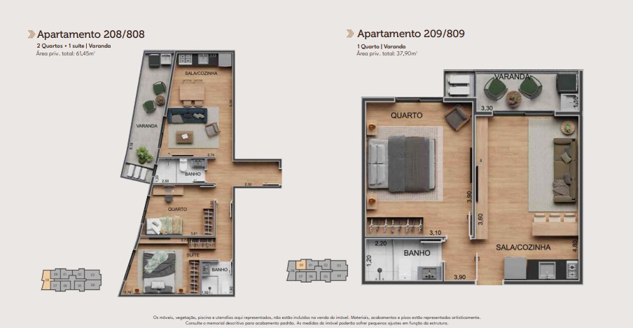 | Metragem | De 37,90m² a 109,25m² |