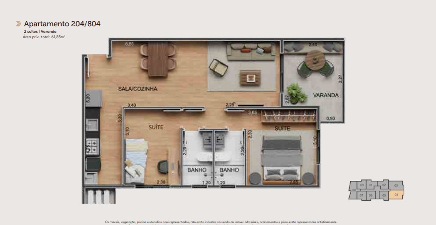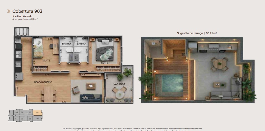 | 02 Quartos | R$ 425.000,00 | 61,45m² |