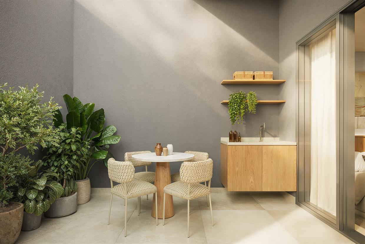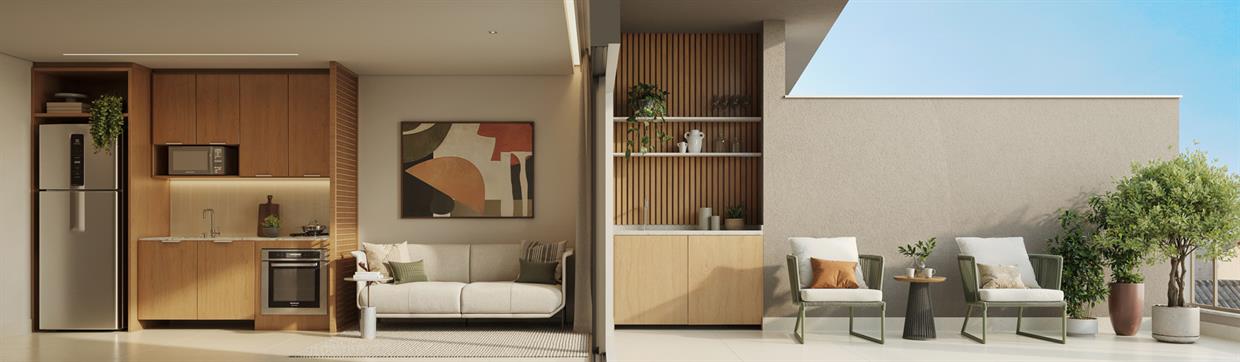 Up Gardens, com 1 e 2 quartos e área externa privativa, ideais para quem sonha em ter um “quintal” no coração da cidade.
