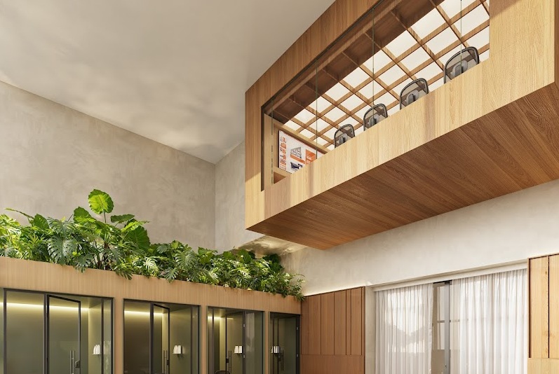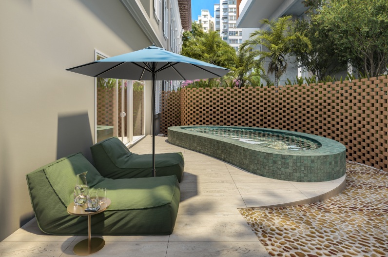 Symphony Flamengo utiliza o design biofílico para integrar a natureza ao cotidiano urbano. As áreas externas foram planejadas para oferecer frescor e sombreamento natural, transformando a chegada em casa em um momento de relaxamento visual e sensorial.