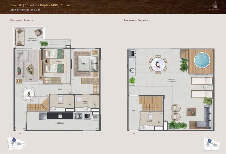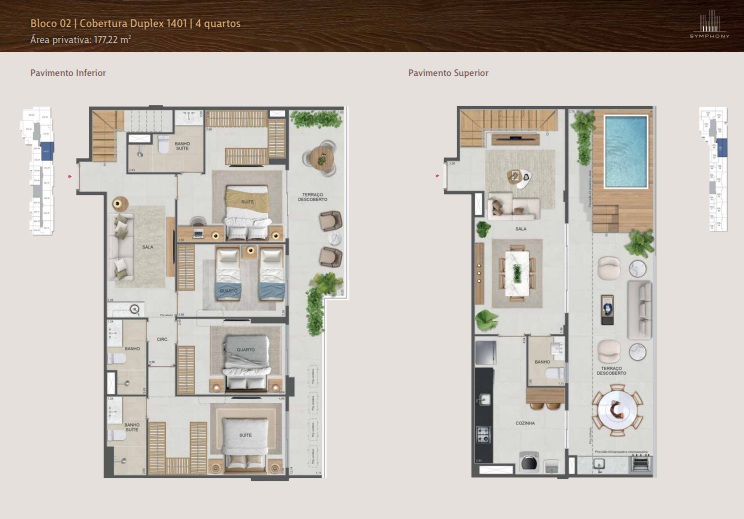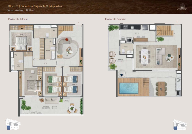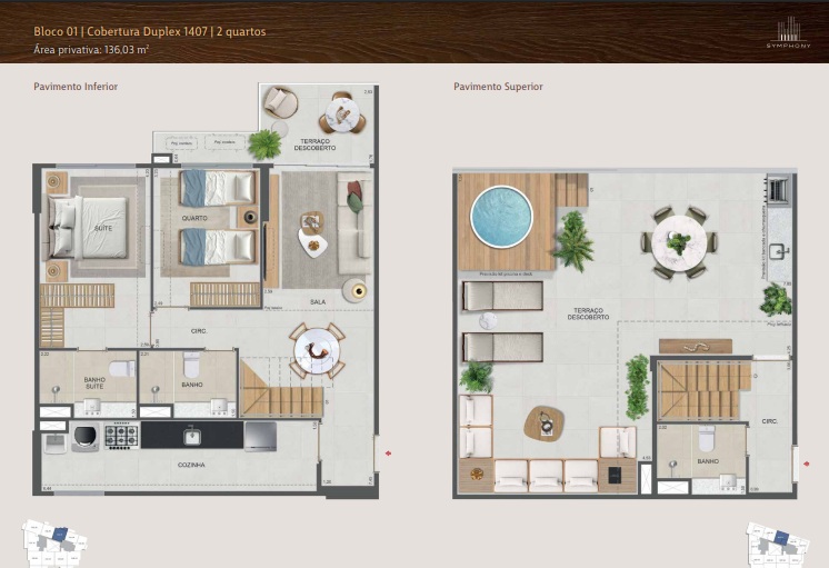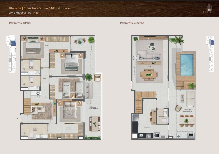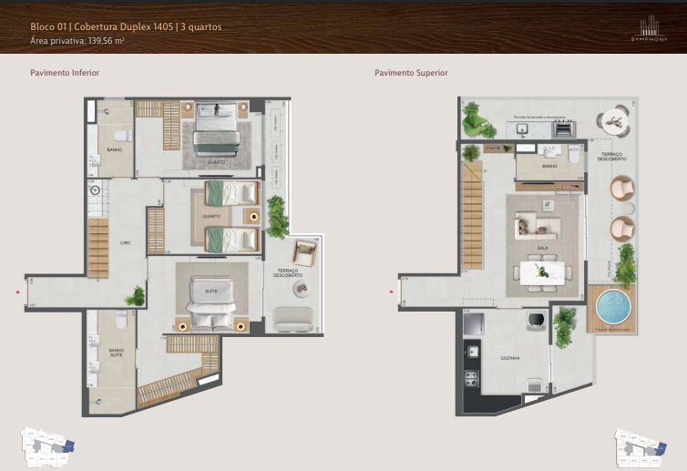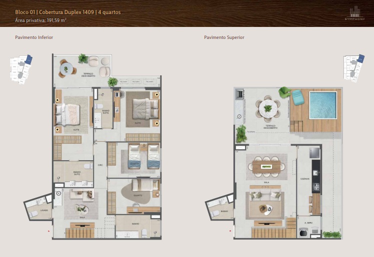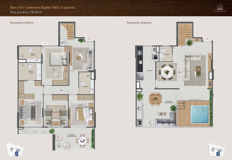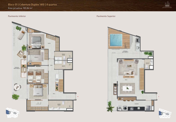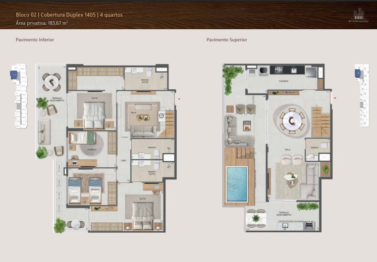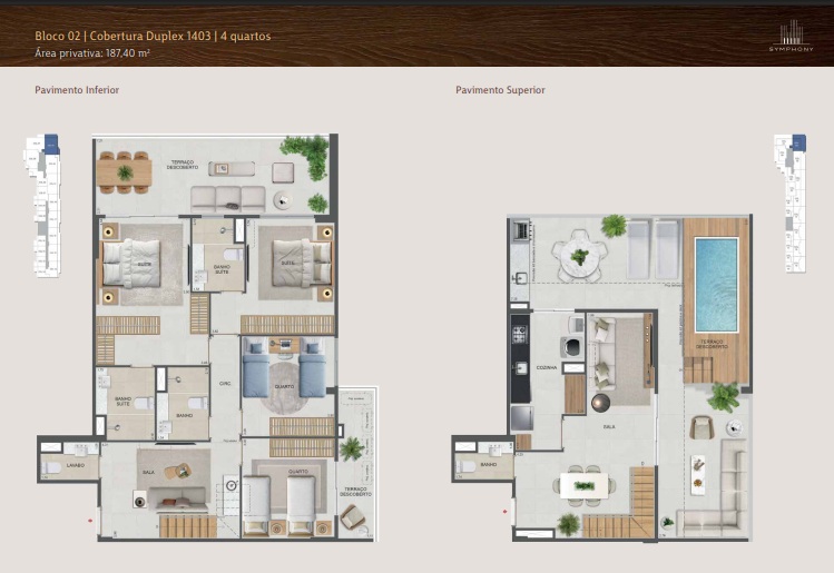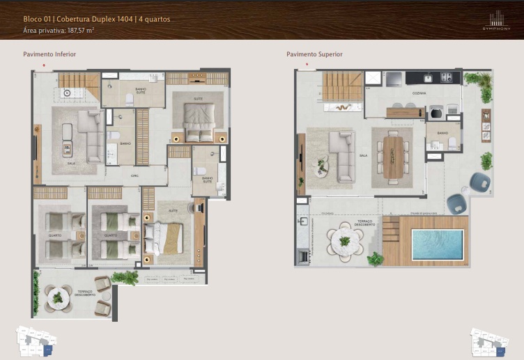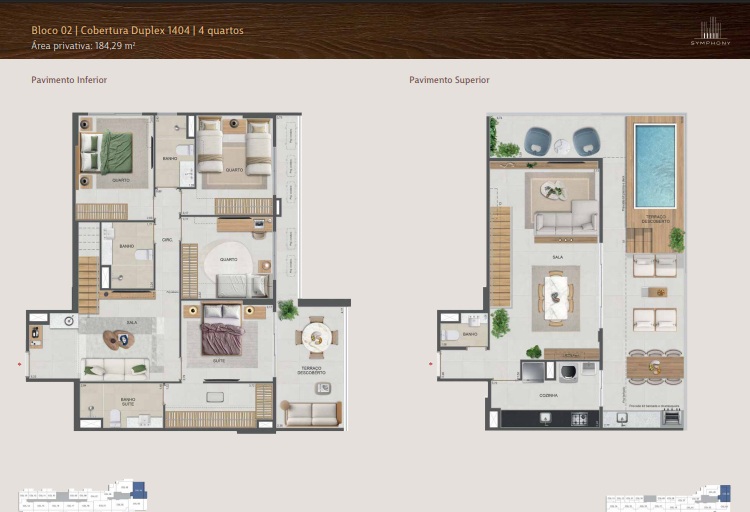 Symphony Flamengo possui Coberturas Duplex que são verdadeiras joias arquitetônicas. Com metragens que chegam a 194,26 m², essas unidades oferecem até 4 quartos e um terraço privativo que redefine o prazer de morar na Zona Sul.