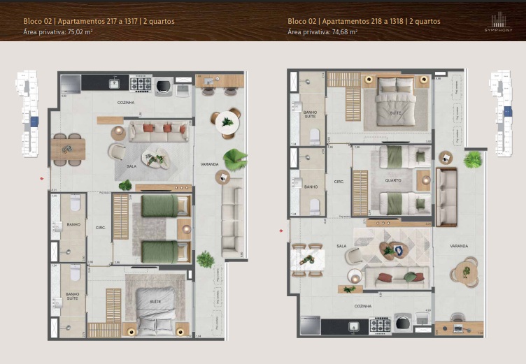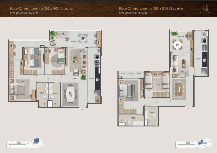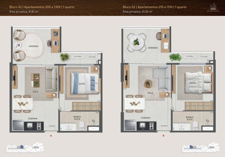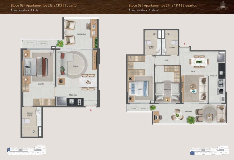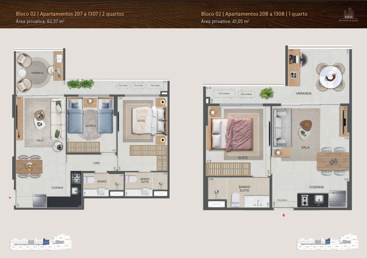 Já o Bloco 2 do Symphony Flamengo oferece unidades mais variadas: