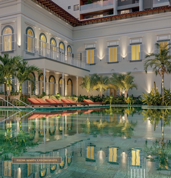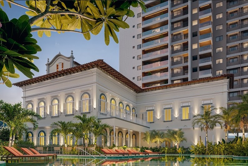 Um dos maiores charmes do Lançamento Newview Marquês de Abrantes é o casarão histórico preservado. Ele foi integrado de forma orgânica, abrigando áreas comuns como salão de festas e salas de reunião no jirau.
